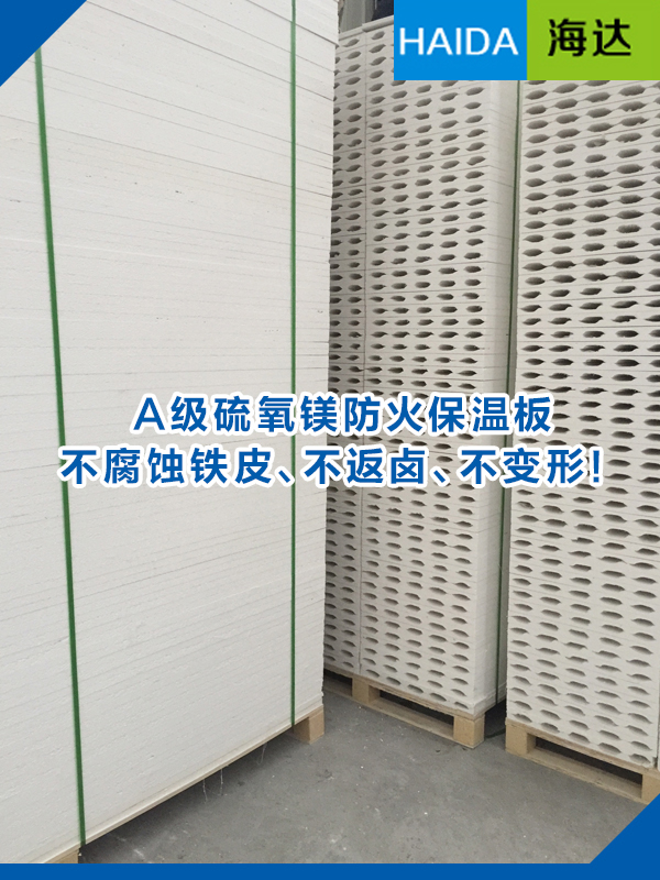 一:产品概述: 硫氧镁防火保温板(俗称硫氧镁中空板)是彩钢净化板中的芯材,由硫酸镁、氧化镁、改性剂、EPS聚苯乙烯颗粒、聚丙纤维为主要材料,以耐碱网格布为增强材料,按照一定的配比混合成浆料,充分搅拌后,采用层压法生产,压制成型后养护而成,是一种绿色、环保的新型净化保温产品:它具有防火、防水、保温、耐压、隔热、隔声、无毒和质轻、外观整齐等多方面的优良性能,是绿色节能环保的新一代净化设备保温板,克服了目前市场上一些彩钢净化板芯材的不足,如:强度、抗弯、承载力、保温效果、外观及平整度不能满足设计要求。它与其他类型的彩钢板芯材相比,性能参数优良稳定,尤其在强度及承载力方面有着其它彩钢板芯材无法相比的优势,特别适合于做吊顶板或室外屋面板及围板。通过相关国家权威检验,该制品燃烧性能符合A1级的规定要求。硫氧镁防火保温彩钢板是以硫氧镁板条或者硫氧镁中空板复合彩涂钢板制作而成的彩钢夹芯板。硫氧镁夹芯彩钢板充分发挥了硫氧镁复合材料的独特性能,在防火,防潮,防脱胶,高强度,保温,隔热,吸音等方面有着显著地优点及功效。